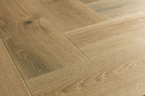 Introducing the world’s first creak free, waterproof herringbone laminate floor.